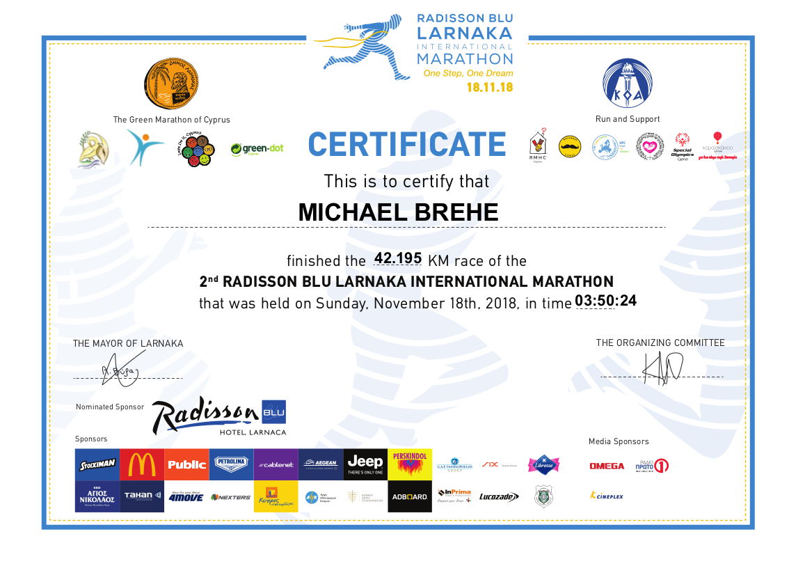 | Link: | Larnaka Marathon | Strecke | Ergebnis | Ergebnis (pdf) | Ergebnis AK (pdf) | Ergebnis Seite 1 | Ergebnis Seite 2 | Urkunde |