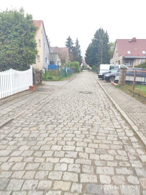 Um 8:45 Uhr mache ich mich auf die Erste von sechs Runden. Die Strecke verläuft kreuz und quer durch Eichwalde, an einigen Sehenswürdigkeiten vorbei und durch ein Waldstück. Die Strecke ist super mit Schildern markiert. An einer Straßeneinmündung ist kein Schild mit Pfeil zu sehen. Von daher müsste es geradeaus weiter gehen. Auf dem Gehweg ist dafür aber ein Pfeil nach rechts mit gelber Kreide aufgesprüht. Gehört der nun zum Lauf? Oder nicht? Leider entscheide ich mich dafür, weiter geradeaus zu laufen was am Ende bedeutet, dass ich durch die Extraschleife einige Kilometer mehr laufen muss. Das hätte ich nicht gebraucht.
