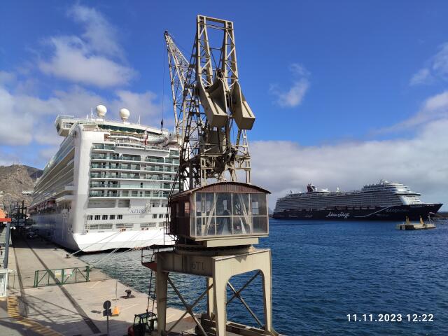 Die Startnummer gibt es in einem Zelt auf der Promenade vor dem Kreuzfahrtschiffterminal. Weil ich eh noch nicht ins Hotel kann, kann ich da zunächst in aller Ruhe hinlatschen und dabei noch ein paar Dinge wegglotzen. |