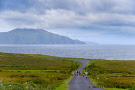 Logo Das Wetter ist super. Kein Regen und angenehme Lauftemperaturen zum Start um 8:00 Uhr auf einer Wiese, bzw. Sportplatz hinter Mc Loughlin's Bar. Nach 500 Metern hat man Achill verlassen und es geht auf die erste Runde. Zumeist wird an der Küste gelaufen und man kann die sehr schöne Aussicht genießen, zumindest auf dieser ersten Runde, auf der es noch nicht anstrengend ist. Die erste Runde ist auch deshalb recht kurzweilig, da ich mich auf den ersten 15 Kilometer mit Vladimir, einem Laufkollegen, nett unterhalten kann. Vor dem Ende einer jeden Runde müssen noch 200 Meter um den Sportplatz herum gelaufen werden. Für die erste Runde benötige ich 1:55:24 Stunden. Die Halbmarathonläufer warten schon auf Ihren Start in knapp fünf Minuten.