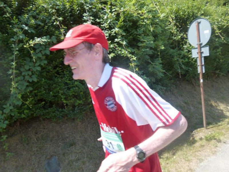 Als es um 9:00 Uhr losgeht sind es schon 25,5 Grad. Da alle rumtrödeln bleibt mir nichts anderes übrig, als auf den ersten zwei Kilometern die Führung zu übernehmen, obwohl ich nur in meinem aktuellen Wohlfühltempo laufe. Offensichtlich sind die ganz schnellen Leute von gestern und vorgestern heute nicht mehr dabei. Die erste Hälfte klappt wider Erwarten recht gut und da es der bis dahin Zweitplatzierte es auf der zweiten Hälfte wohl etwas ruhiger angehen lassen will, da er nun mit einem Hund im Schlepptau nur noch geht, bin ich nun sogar auf dem zweiten Platz.