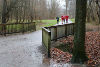 5:00 Uhr aufstehen. In aller Ruhe gönne ich mir noch ein halbstündiges Frühstück, bevor ich einige Sachen zusammenpacke, um mich dann gegen 6:30 Uhr mit dem Fahrrad auf den Weg zum 5 Kilometer entfernten Rubbenbruchsee zu machen. Entgegen aller Vorhersagen regnet es noch nicht. Gegen 7:00 Uhr beginne ich mit meiner Streckenmarkierungsrunde. Da in den letzten 12 Monaten irgendeiner den "Startbaum" gekillt hat, kommt das Start-Schild diesmal an die Bank vor dem Bootssteg. Um 8:15 Uhr bin ich von der Markierungsrunde zurück. Dori und Michel sind schon fleißig am Aufbauen. Da sich in den letzten Jahren auch schon eine gewisse Routine beim Aufbau entwickelt hat, kommen wir gut voran und sind rechtzeitig fertig, als die ersten Teilnehmer gegen 9:30 Uhr eintreffen. Leider fängt es dann doch um 10 Uhr an zu regnen, was der Stimmung aber nicht abräglich ist.