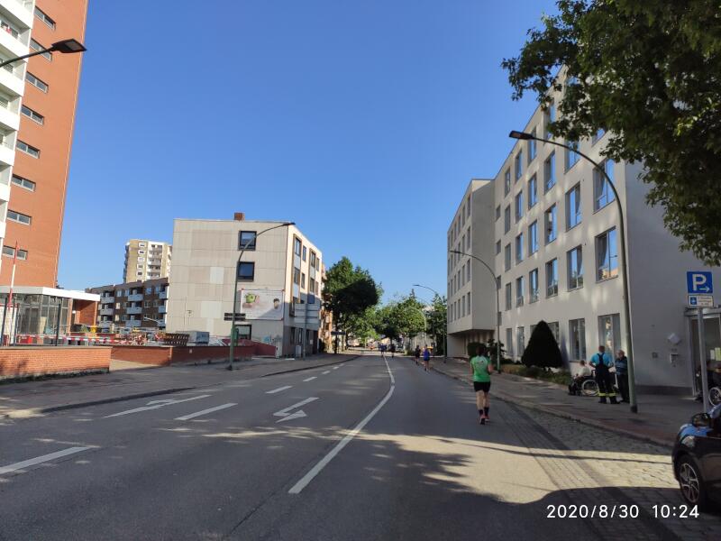 Bei der Startnummernabholung und bei der Warterei auf den Start ist alles recht entspannt. Wegen Corona ist jeder gehalten etwas Abstand zu wahren und während des Starts eine Maske zu tragen. Auch diejenigen, die von der Sinnhaftigkeit der Maßnahmen nicht so ganz überzeugt sind, halten sich gerne daran, da jeder überhaupt froh ist, dass endlich mal wieder ein normaler Marathon stattfindet.