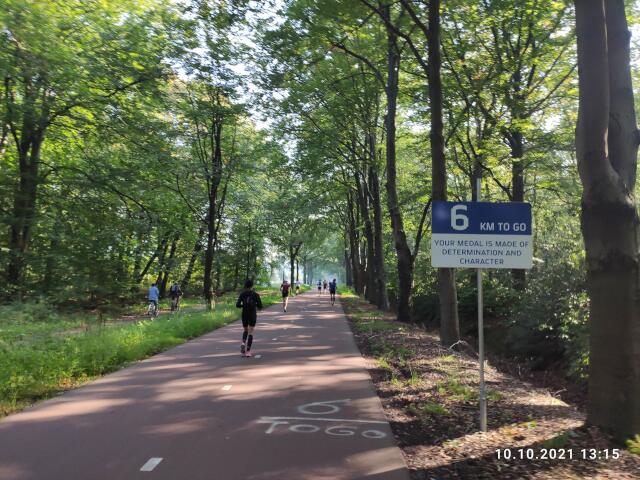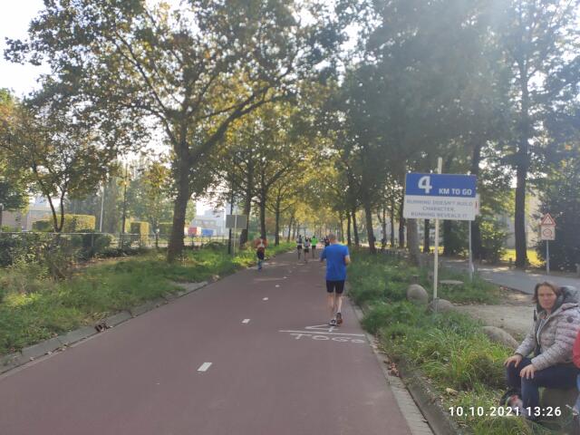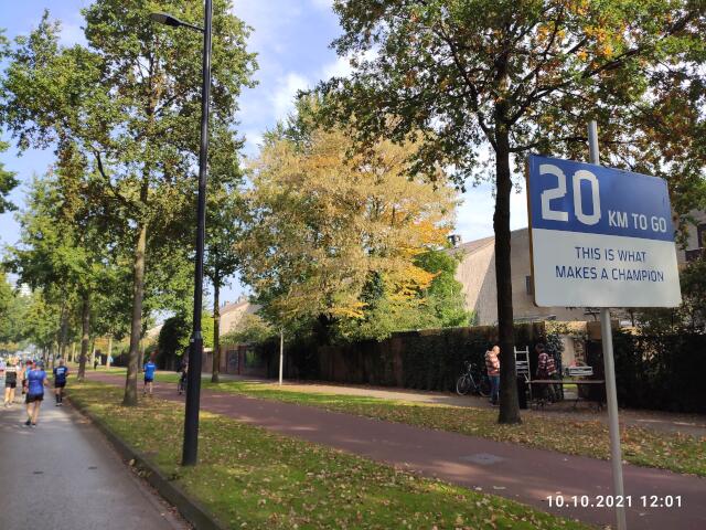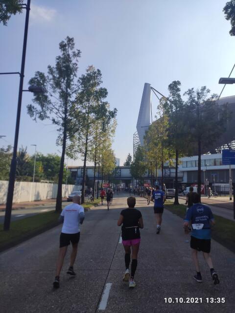 Um 10:00 Uhr geht's los. Schon bald nach dem Start sehe ich mich gezwungen, einige Kollegen zu überholen, denn wenn ich am Anfang zuviel Zeit verliere, kann ich die sub 4 Stunden knicken. Nach ein paar hundert Metern ist das schöne Stadion des PSV Eindhoven erreicht, eine erste Sehenswürdigkeit auf der Strecke. Nach einigen Kilometern laufe ich auf einen Pulk auf, der offensichtlich hinter dem 4-Stunden-Pacemaker herläuft. Nachdem der überholt ist, ist erstmal alles im grünen Bereich, Hauptsache der holt mich nicht mehr ein. Die Strecke ist recht interessant, abwechslungsreich und nicht langweilig. Alle 5 Kilometer ist ein Kilometerschild mit den gelaufenen Kilometern und nach jedem Kilometer, ein Schild mit den noch zu laufenden Kilometern über einem "lustigen" Spruch, aufgestellt. Nach der Hälfte der Strecke hat man wieder die Innenstadt erreicht. Es geht am Parkplatz mit meinem Schlafauto und am Bahnhof "Eindoven Central" vorbei, bevor es auf die zweite Hälfte der Strecke geht, die die Form einer 8 hat. Weiterhin läuft es gut. Viele bestgelaunte Passanten, mehrere Stimmungsnester und einige Kapellen machen Stimmung und feuern die Teilnehmer an. Nur selten werde ich von einem anderen Teilnehmer überholt, der dann aber zu einer Staffel gehört. Ansonsten kann ich aber noch sehr viele Kollegen einholen, die im Gegensatz zur mir, langsamer werden. Kommt heute noch der Einbruch? Nein, im Gegenteil. Zwischendurch sogar mal sowas wie ein kleiner Laufrausch mit Gänsehautfeeling. Zwei Kilometer vor dem Ziel nochmal am Stadion vom PSV vorbei, aber diesmal in anderer Richtung, dann weiter in die City, durch die Fußgängerzone und die Altstadt, und immer durch ein Spalier mit vielen Leuten in Feier- und Anfeuerungslaune. Keine Maske und verbiesterte Coronastimmung weit und breit. Es macht richtig Spaß. Noch einmal links rum, die Zielgerade runter, hinein ins Ziel. 3:42:56 Stunden. Endlich mal wieder eine gute Zeit in einem sehr gleichmäßigen Tempo. Die top Bedingungen und die super Stimmung haben sicher ihren Beitrag geleistet. Eine halbe Stunde später mache ich mich dann auf den Rückweg, wobei das neue 100er Tempolimit tagsüber auf den Autobahnen hier schon richtig an die Nerven geht. |