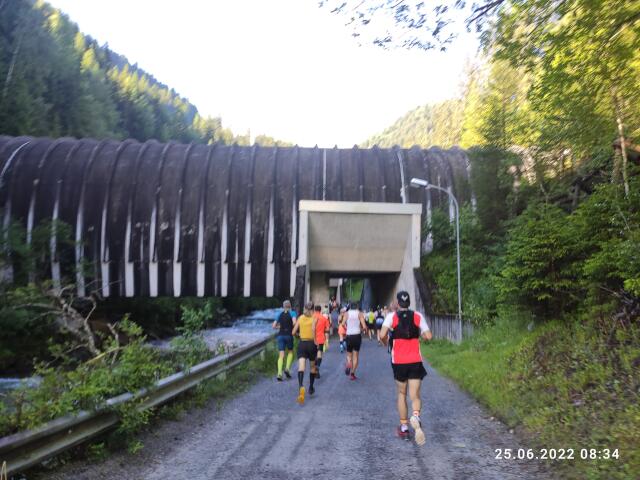 Es ist 8:30 Uhr. Allerbeste Bedingungen für die knapp 200 Teilnehmer des Marathon. Ein strahlend blauer Himmel und angenehme Temperaturen von mindestens 15 Grad lassen die Stimmung steigen. Nach gut zwei Kilometern muss ein erster, steiler Krumpelpfad hochgekraxelt werden. Wer sich vorher zu weit hinten einsortiert oder getrödelt hat, hat jetzt Pech, denn ein Überholen ist an dieser Stelle kaum möglich. Das ist aber nicht so schlimm, denn schon bald wird der Weg wieder breiter und laufbar. Bis Kilometer 14 kann man sich nun über sehr gut laufbare Wege und viele schöne Aussichten freuen. Meist geht es leicht bergauf, manchmal auch ein wenig bergab. Dann ein mehrere Kilometer langes Trailstück. Es geht auf Single Trails über Felsen, Wiesen und einige Bachquerungen. Oftmals ist der Untergrund vom Regen der letzten Nacht recht aufgeweicht und matschig. Da ich mit meinen hohen Gore Tex Schuhen nicht so große Rücksicht darauf nehmen muss, sacke ich schon mal bis zum Knöchel in die Pampe ein. Bald hat man links die schöne Aussicht auf den Langsee und mit 1955m gleichzeitig den höchsten Punkt der Strecke erreicht. Einmal passe ich nicht auf und klatsche hin. Gott sei Dank nur in ein Matschloch und nicht auf einen Felsen, aber in der Folge zwickt es einige Kilometer leicht im Knie und Fußgelenk, bis es irgendwann rausgelaufen scheint. Bei Kilometer 29 steht wieder eine große Verpflegungsstation. Für die Teilnehmer des 33 Kilometer Laufes geht es nun weiter geradeaus, durch das Silbertal ins Ziel. Der Rest darf nach rechts abbiegen, wo es schon bald so steil bergauf geht, dass man nur noch marschieren kann. Verpflegungsstationen sind überhaupt reichlich vorhanden und sehr gut ausgestattet. Immer hat man viele verschiedene Getränke zur Auswahl und auch einiges an fester Nahrung steht zur Verfügung, was ich aber, wie eigentlich immer auf der Kurzstrecke, nicht nutze. Bei der nächsten Station, bei Kilometer 32,2, sind fast 4 Stunden vergangen. Will ich unter 5 Stunden bleiben, muss ich jetzt aber nochmal einen Zahn zulegen. Leider müssen aber jetzt erst einmal 300 positive Höhenmeter überwunden werden. Das klappt ganz gut, noch ist nichts verloren. Hier oben hat man schon einen schönen Blick in das Silbertal und auf den Ort Silbertal mit dem Ziel. Leider habe ich nur Zeit für ein kurzes Foto und nicht für die schöne Aussichtsplattform. Jetzt kommt es darauf an, wie schwierig der nun folgende Abstieg wird. 650 negative Höhenmeter auf 7 Kilometer. Da ich noch gut drauf bin glaube ich, dass das noch zu schaffen ist, sofern es nicht mehr zu technisch und krumpelig wird. Leider geht es dann aber doch plötzlich vom Hauptweg nach links ab. Ein schmaler Single-Trail-Pfad. Nicht allzu schwer und auch nur ein paar hundert Meter lang, aber für mich schwer und lang genug, dass ich einiges an Zeit verliere. Schade. Ob das nun noch reicht? Nach einem weiteren Laufstück, noch ein Trailstück. Das war es dann vermutlich mit den 5 Stunden. 2-3 Kilometer weiter, unten in Silbertal angekommen, sind die 5 Stunden rum. Ich höre die Zieldurchsage, dass es jemand so grad noch in 4:59:59 Stunden ins Ziel geschafft hat. Jetzt noch ein kurzes Flachstück, dann geht es auch für mich, über einen roten Teppich, ins Ziel am Feuerwehrhaus. Zwar 3 1/2 Minuten "zu spät", aber das ist egal, denn das war ein sehr schönes Läufchen hier und zudem bin ich auch nicht allzu kaputt. Bei bestimmt 25 Grad hänge ich nun noch ein wenig auf der schönen Zielparty herum, bevor ich mich auf den Weg in das ein paar hundert Meter entfernte Schulzentrum zu den Duschen mache, die dann aber leider kalt sind. Egal. Da muss ich jetzt auch noch durch. Um 15:00 Uhr geht es dann auf den Heimweg und 8 Stunden später bin wieder in Osnabrück. Das war ein schöner Samstagsausflug. |