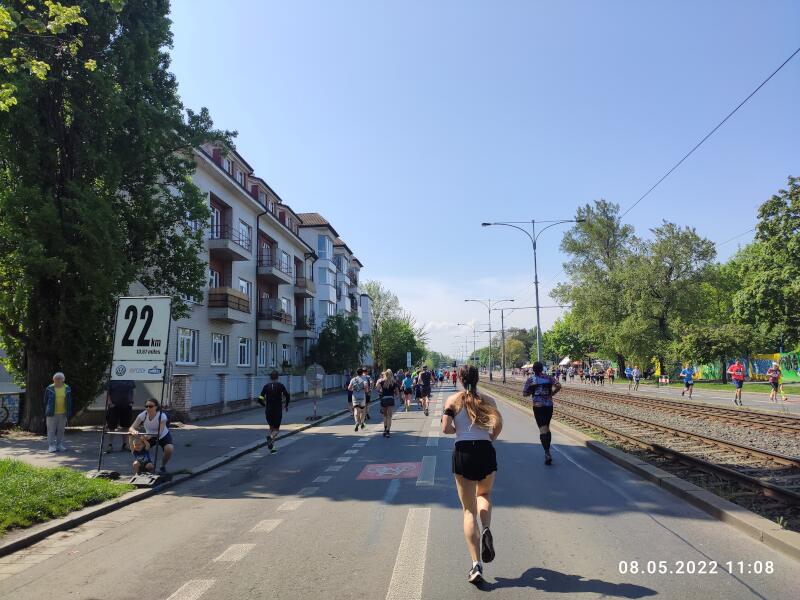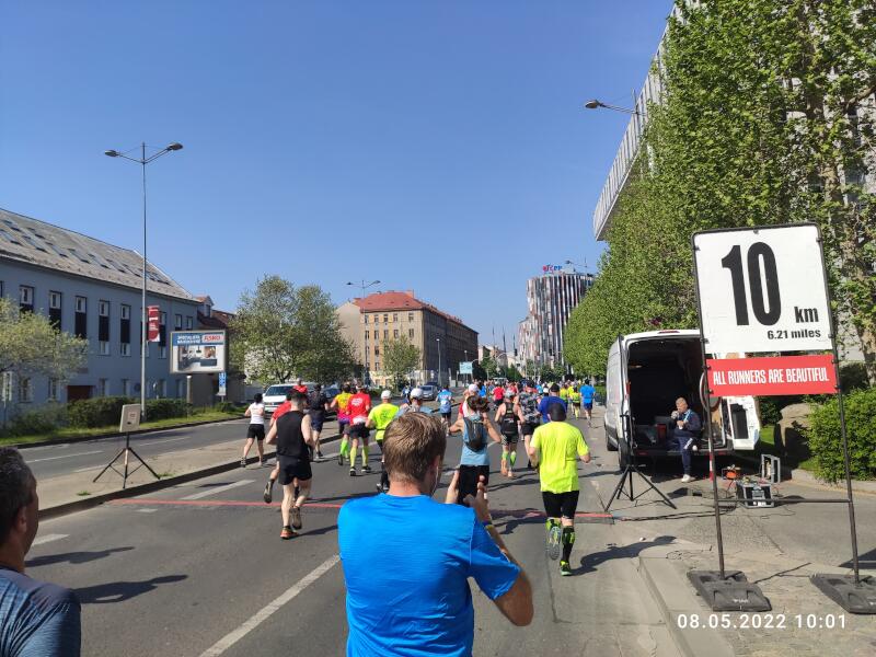 Gegen 16:00 Uhr, etwas früher als erwartet, mache ich mich auf den Weg in das knapp 650 Kilometer entfernte Prag. Nach meiner Ankunft um 23:00 Uhr finde ich einen passenden Parkplatz, nur wenige Gehminuten vom Start entfernt. Dann noch ein kleiner Spaziergang, vor dem Gang in das Ford-Hotel. Nach dem Frühstück treffe ich Rob, pappe meine Startnummer ans Trikot und wir gehen zum Startgelände in der Altstadt. Dann noch ein wenig herumhängen, bevor um 9:00 Uhr der Start erfolgt. Durch die Startaufstellung in einer engen Altstadtstraße benötige ich über 6 Minuten, bevor ich die Startlinie überquere. Blöd nur, dass hier die Bruttozeit als offizielle Endzeit für die Platzierung gewertet wird, wie ich hinterher feststellen muss. Das kostet einige Plätze. Hat man erst einmal die Startlinie überquert, kann man schnell frei laufen. Die Temperaturen sind angenehm warm, so um die 20 Grad. Kreuz und quer geht es durch die Stadt, an vielen Sehenswürdigkeiten vorbei. Oft geht es direkt entlang der Moldau und andauernd müssen Brücken überquert werden, einige sogar mehrmals. Nach 12,5 Kilometern läuft man zum ersten Mal auf der Zielgeraden, um das Ziel dann aber rechts liegen zu lassen, denn es sind ja noch ein paar Kilometer. Es ist weiterhin schön warm, was aber keine Probleme bereitet, denn es gibt genügend Verpflegungsstände mit Wasser und Iso. Der Halbe ist nach 1:57:30 Stunden geschafft. Das ist gut. Mehr konnte ich heute, bei diesem GUCR Trainingslauf, nicht erwarten. Jetzt darf ich aber nicht nachlassen, damit ich zumindest unter vier Stunden bleibe. Bei Kilometer 30-35 muss ich mir leider eingestehen, dass ein negativer Split leider nicht machbar ist, denn ich verliere auf jedem Kilometer ein paar Sekunden, im Vergleich zur ersten Hälfte. Nach genau 3:38 Stunden rette ich mich dann schlussendlich ins Ziel. Unter 4 Stunden und kein allzu großer Zeitverlust auf der 2. Hälfte. Das ist ok. Schon bald nach dem Zieleinlauf latsche ich zurück zum Auto und nach einer schnellen Katzenwäsche geht es gegen 13:45 Uhr zurück nach Osnabrück. Die Fahrt dauert, wegen einiger Staus in Prag und auf den Autobahnen, dann aber etwas länger als erhofft. Gegen 21:30 Uhr ist dann der kure Ausflug nach Prag beendet. |