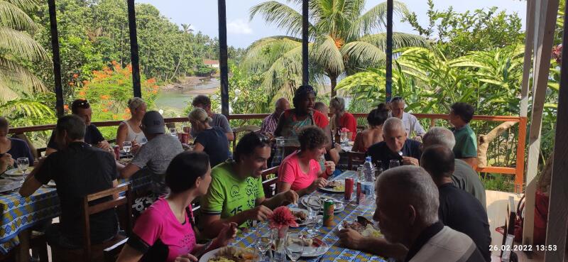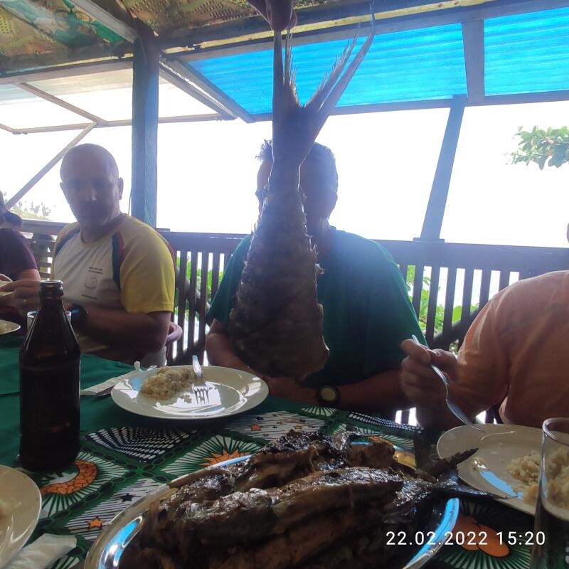 | Sa., 26.02.22 | Noch einmal im Atlantik baden gehen, bevor es, nach einem ausgedehnten Frühstück, um 11:30 Uhr mit einem Kleinbus, in ca. 2,5 Std Fahrzeit, zurück nach São Tomé City geht. Auf halber Strecke nochmal ein längerer Halt an einen Restaurant zum Lunch. In São Tomé City noch ein Stopp an einer Schokoladenfabrik mit Café zum Herumhängen vor dem Abflug. Vor dem Abflug um 20:20 Uhr, kann man noch in aller Ruhe das Spiel Frankfurt-Bayern im Kicker Liveticker verfolgen (0:1). Dann in 1,5 Std nach Accra und nach 45 Minuten Aufenthalt, weiter nach Lissabon.