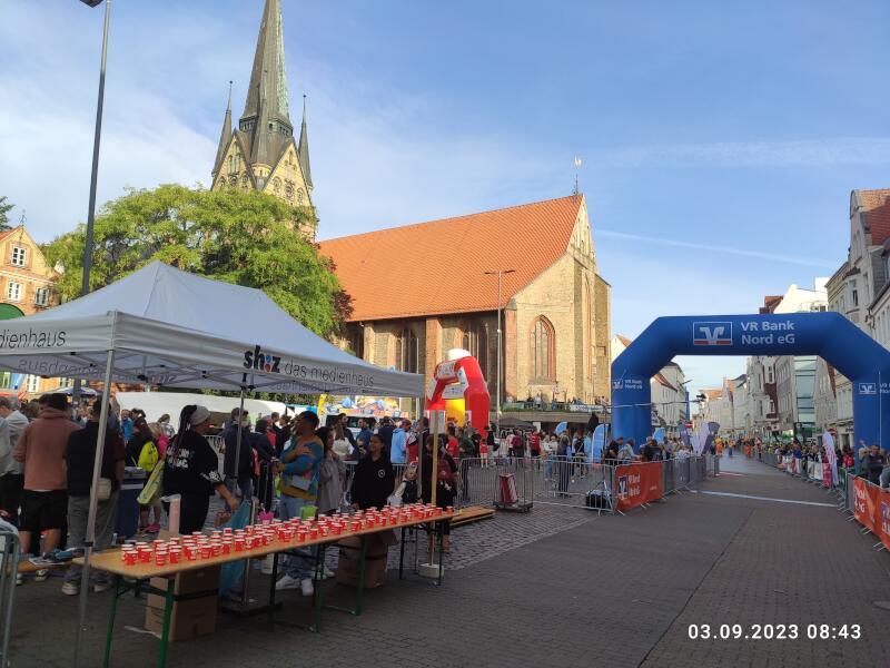 So geht es gegen 7:30 Uhr zunächst zur Bank und danach gibt es noch ein kleines Frühstück am "Hotel". Das Start- und Zielgebiet am Südermarkt ist nur ca. 300 Meter entfernt, also auch ziemlich perfekt gelegen.