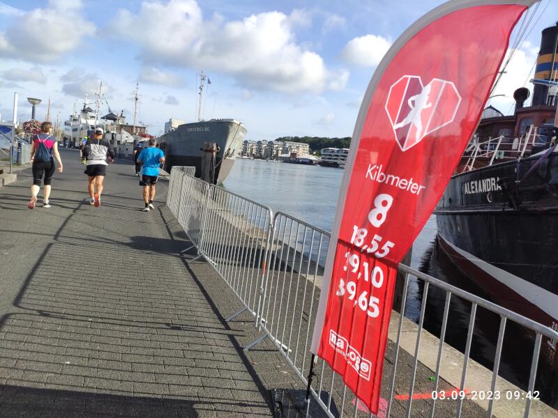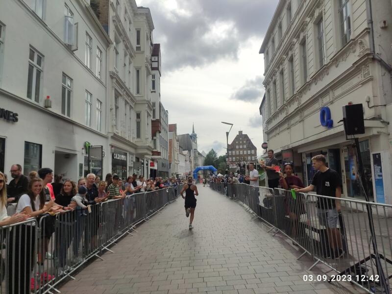 Pünktlich um 9:00 Uhr geht es, bei besten Bedingungen, auf die erste von vier abwechslungsreichen Runden, mit jeweils sechs (!) Verpflegungsständen. Verdursten muss heute jedenfalls keiner - das ist sicher. Auch die vielen besonders netten Helfer und freundlichen Zuschauer und Spaziergänger tragen mit dazu bei, dass es eine sehr gelungene Veranstaltung ist. Nach zwei Runden habe ich mir schon einige Minuten "Vorsprung" auf die 4-Stunden-Marke herausgelaufen, was eigentlich für mein derzeitiges Dauerziel ausreichen sollte. Aber wieviel würde ich davon auf der zweiten Hälfte noch einbüßen? Die 3. Runde ist erst wenige 100 Meter alt, als ich die ersten, langsameren Halbmarathonläufer erreiche, die um 10:45 Uhr gestartet sind. In der Folge ist das sehr motivierend, da man von nun an eigentlich permanent am Überholen ist. An einigen Stellen wird es deswegen zwar manchmal ein wenig eng, aber das ist noch ok. Vermutlich auch durch die zusätzlichen Läufer, verliere ich auf der 3. Runde keine Zeit. Im Gegenteil. Sogar ein paar zusätzliche Sekunden kann gut machen. Das ist schon mal gut. Vor der 4. Runde scheint nun auch eine 3:40er Zeit möglich zu sein. Endlich mal wieder! Aber ich weiß natürlich, was noch alles passieren kann. Trotzdem! Jetzt nur nicht nachlassen! Wann wird der Hammermann kommen? Er kommt nicht. Eine 3:40er Zeit ist mir schon lange sicher. Der letzte Kilometer durch die Fußgängerzone. Dann die 200 Meter lange Zielgerade und am Ende nicht mehr geradeaus auf die nächste Runde, sondern nach rechts ins Ziel. 3:43:01 und ein negativer 59 Sekunden Split. Das ist ziemlich perfekt. Dafür hat sich der Sonntagsausflug nach Flensburg doch gelohnt, finde ich. Die Rückfahrt über die A7 und die A1 mit einigen Staus ist dann zwar etwas mühsam, aber das nehme ich doch gerne in Kauf, für so einen schönen Lauf. |