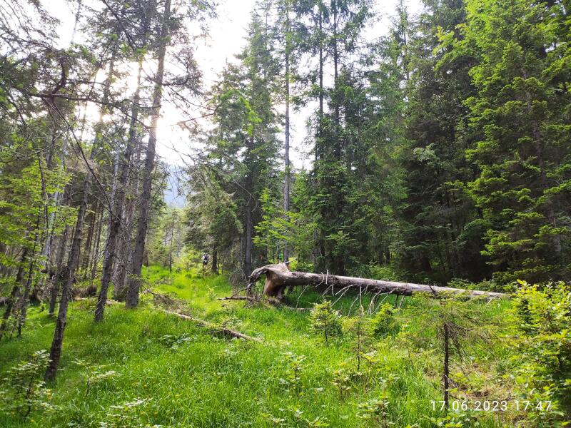 An einem eigentlich gut laufbaren steilen Bergabstück durch einen Wald, über unebene, leicht befestigte Naturtreppen, passe ich einen Moment nicht auf. Die Stufe ist schräg, tiefer als sonst und beim Auftreten gerate ich auf einen losen Stein. Ich rutsche weg, stolpere vornüber, kann mich gerade noch so irgendwie nach links rüberretten und lande mit meiner linken Brust auf einem Felsen. Die Softflask vorne in meinem Rucksack dämpft den Aufprall. Außer ein paar weiteren Kratzern ist nichts passiert. Glück gehabt.